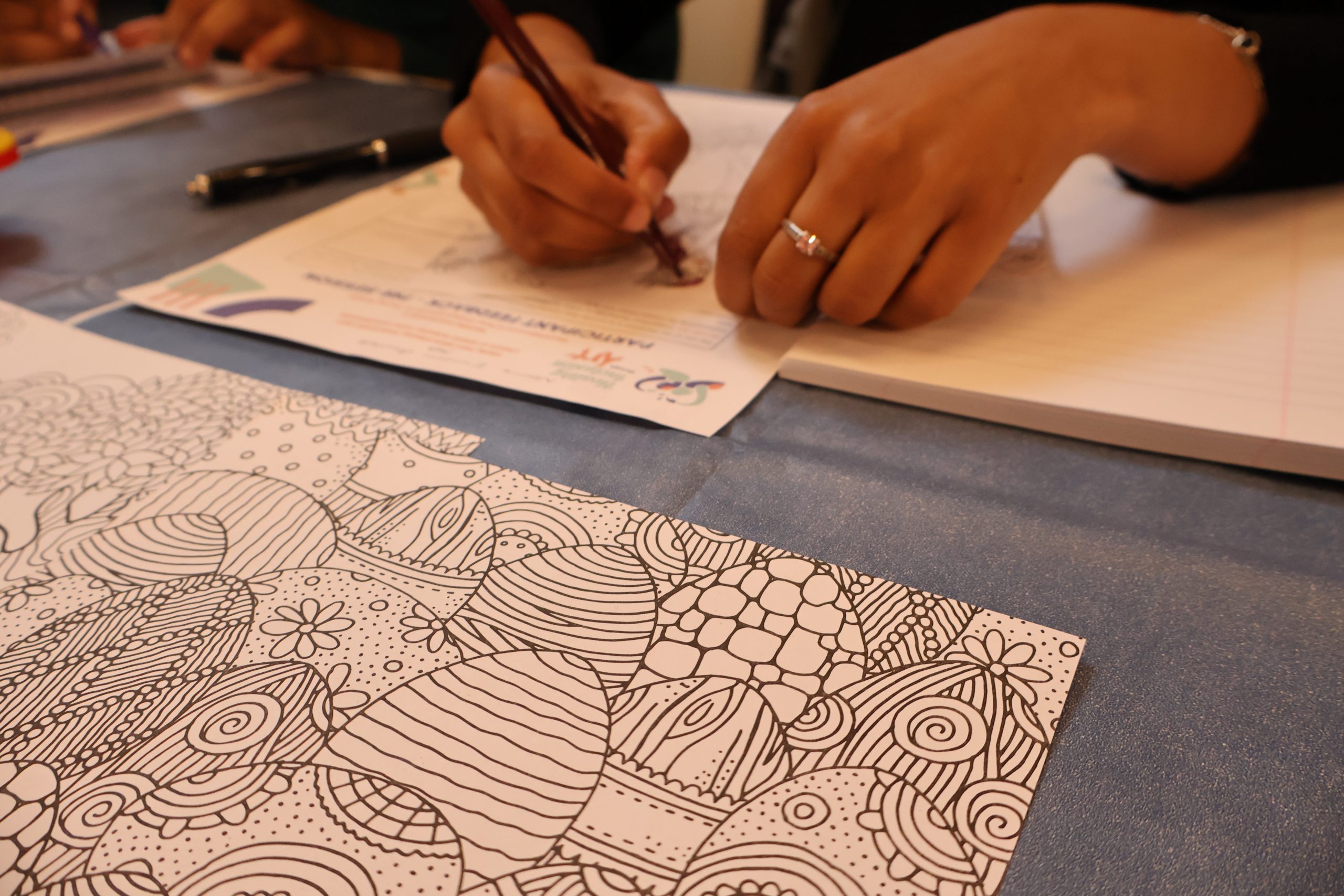 Colour Hug invited participants to explore emotions and well-being through therapeutic colouring and reflective journaling. Although initially perceived by some as “just colouring,” the activity quickly revealed its deeper impact.